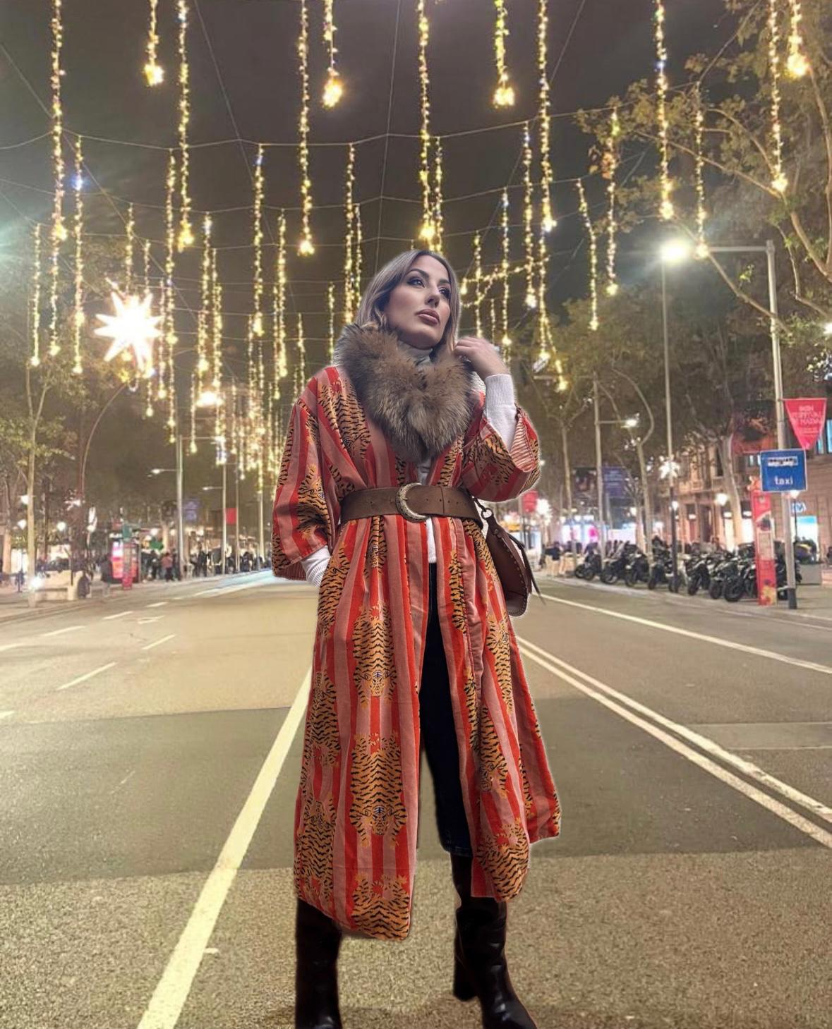 Kimono de terciopelo con interior de algodón.Cinturón en el mismo tejido.