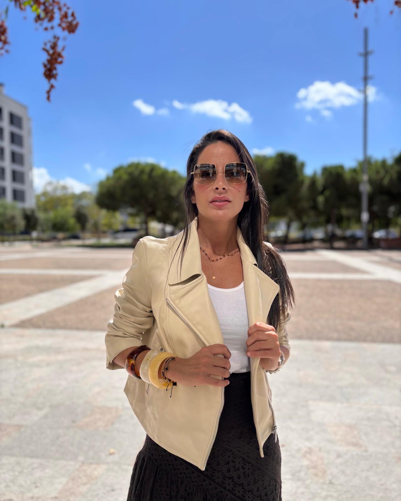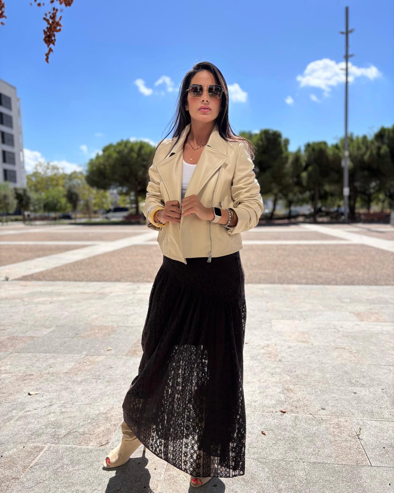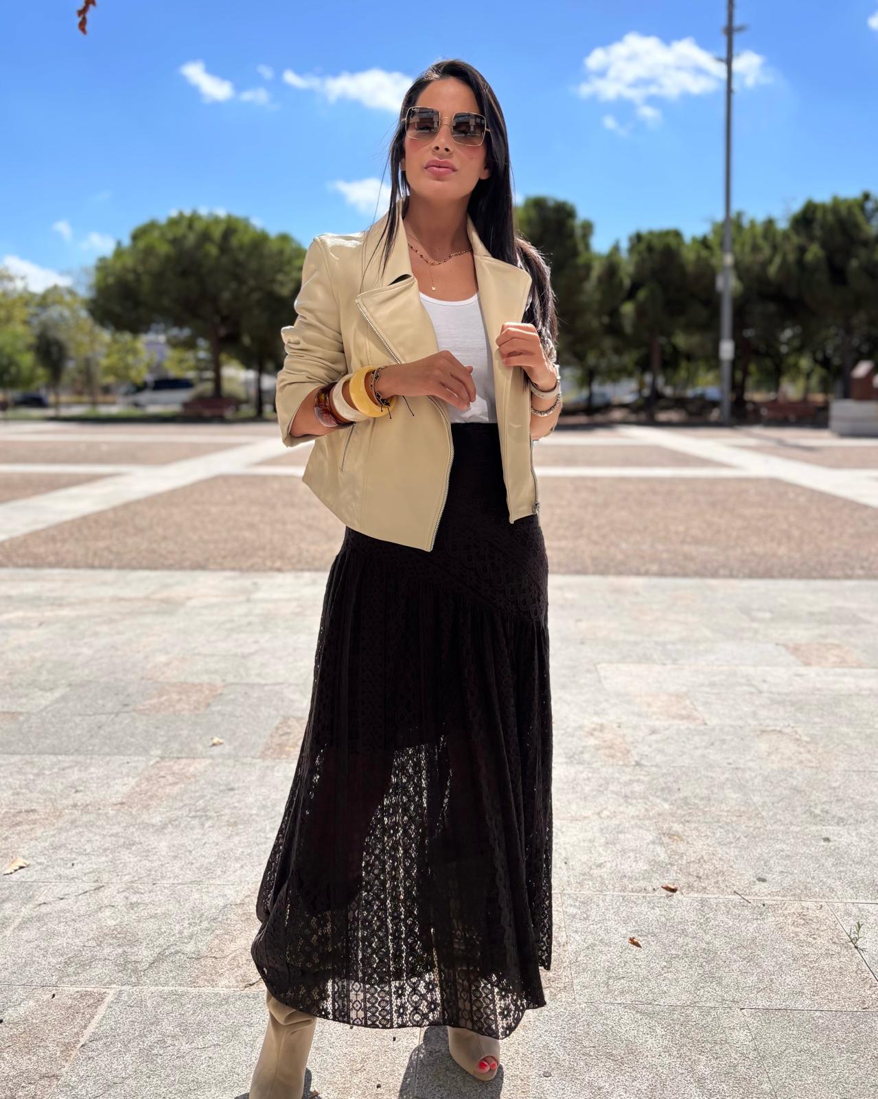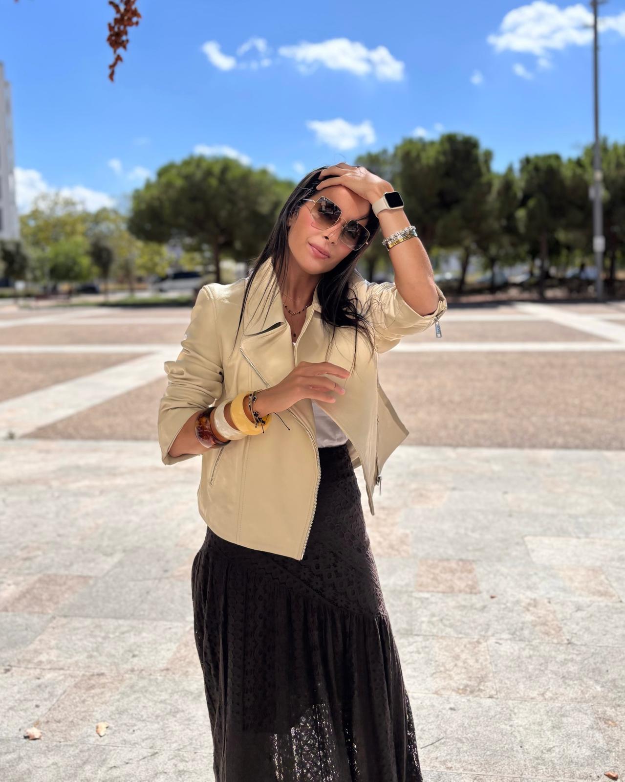 Cazadora de piel ovina de alta calidad.Corte cruzado estilo perfecto.Cremalleras en plata.