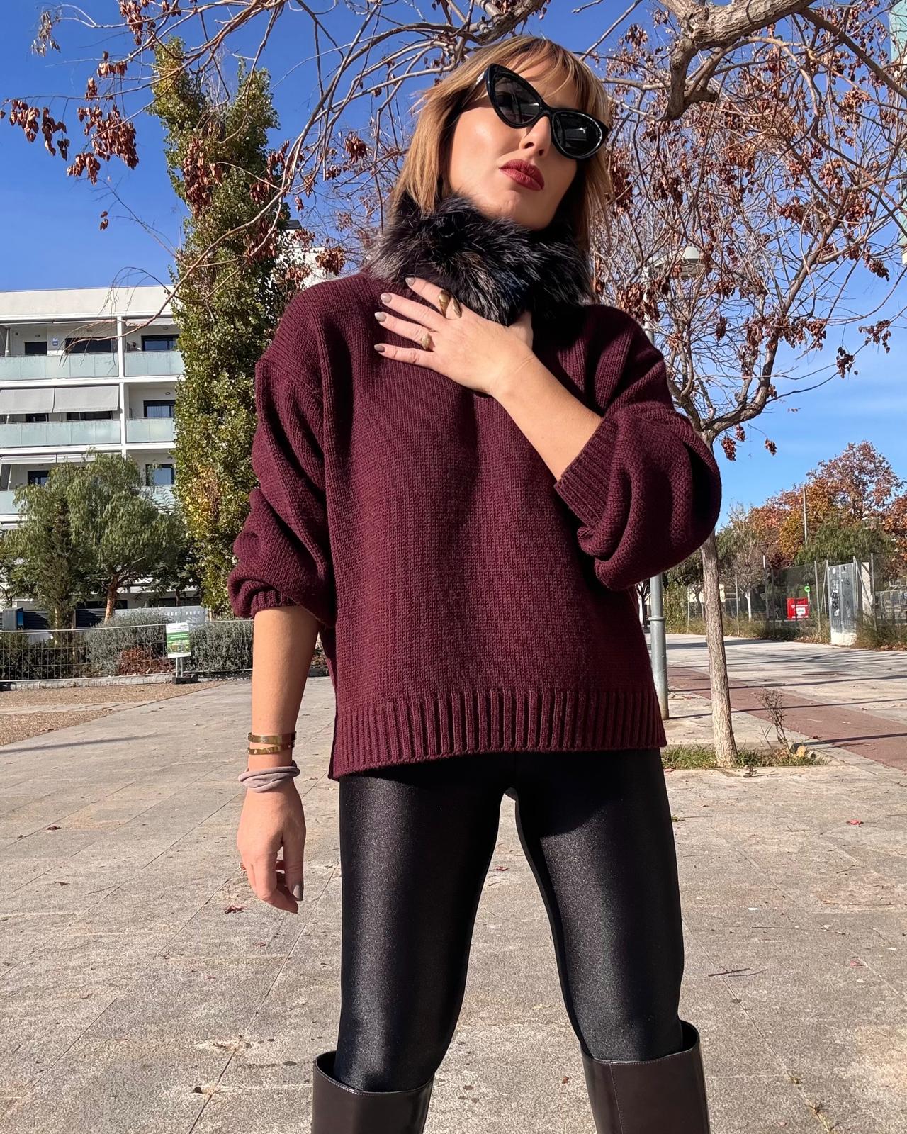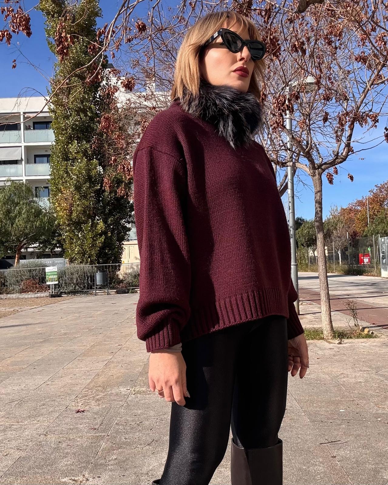 Jersey de punto ligeramente oversize.Cuello redondo cerrado.No contiene lana.