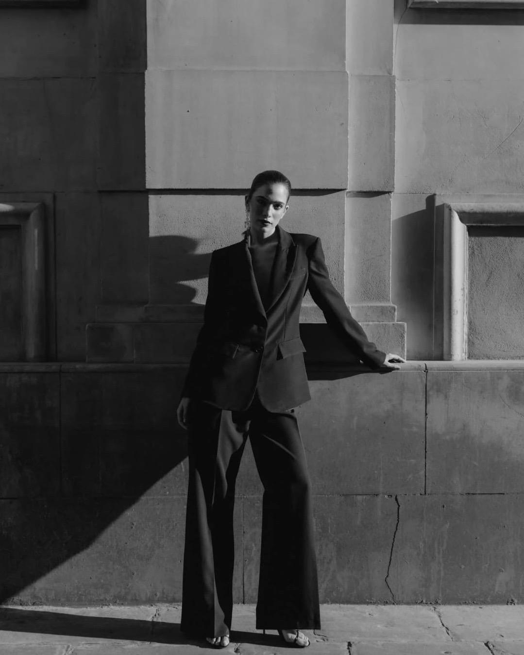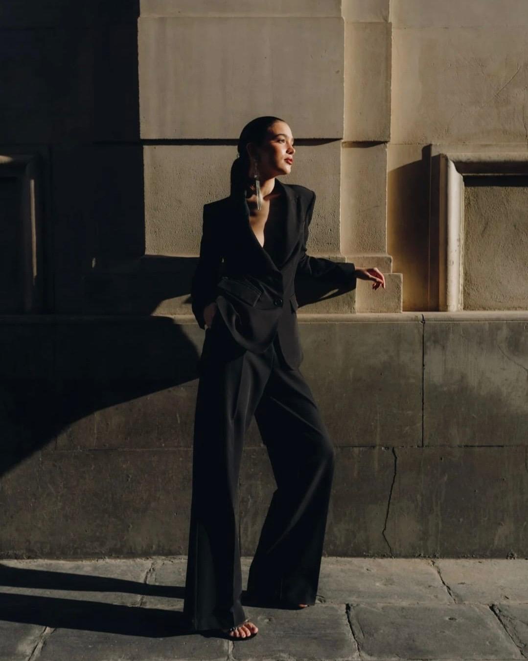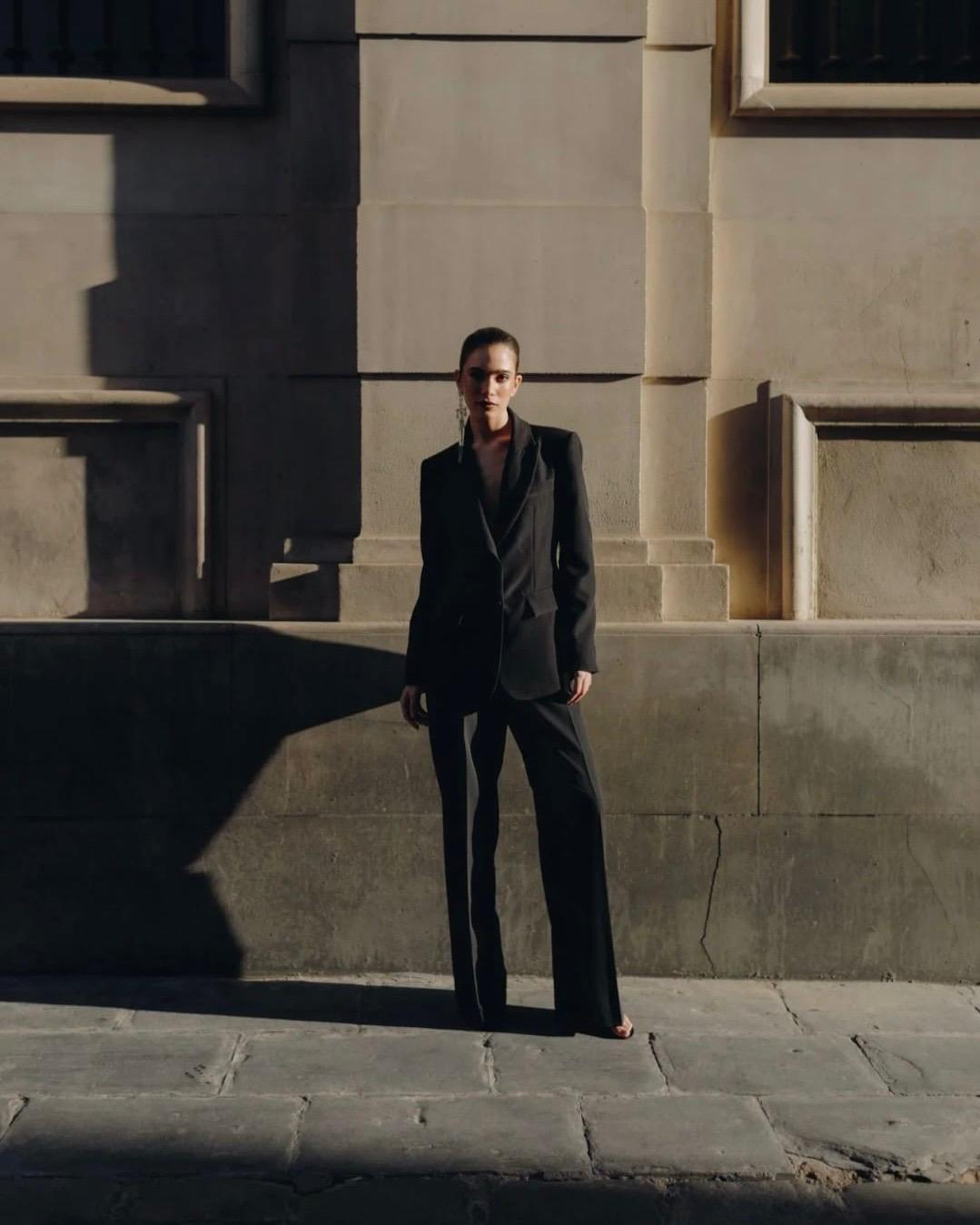 Blazer negra entallada.Clasica ,forrada ,con hombreras .