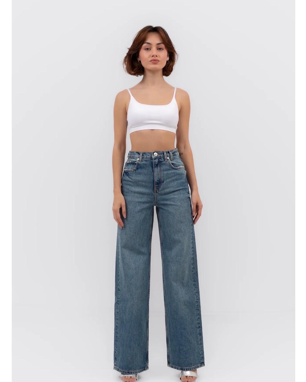 Aube, con silueta loose, de tiro medio alto, ancho de pierna, con el tiro ligeramente caido y bajos desgastados. Confeccionado en Denim superior semirigido compuesto de 99% algodón orgánico, con el icónico botón ANDESITES, bolsillos laterales y traseros y cierre frontal de cremallera.