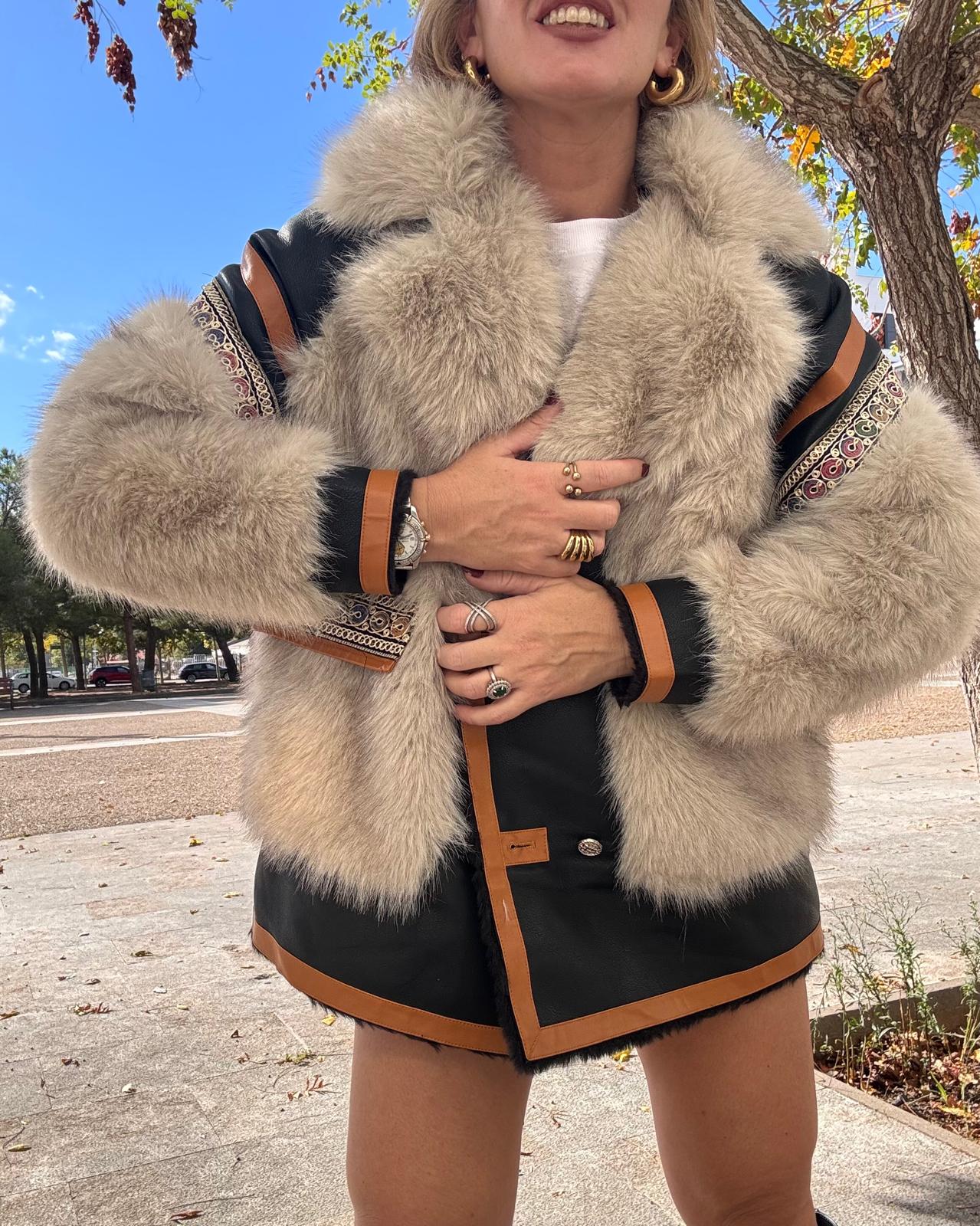 Abrigo combinado en eco piel y eco pelo.Deyalle de cenefas en alta calidad.