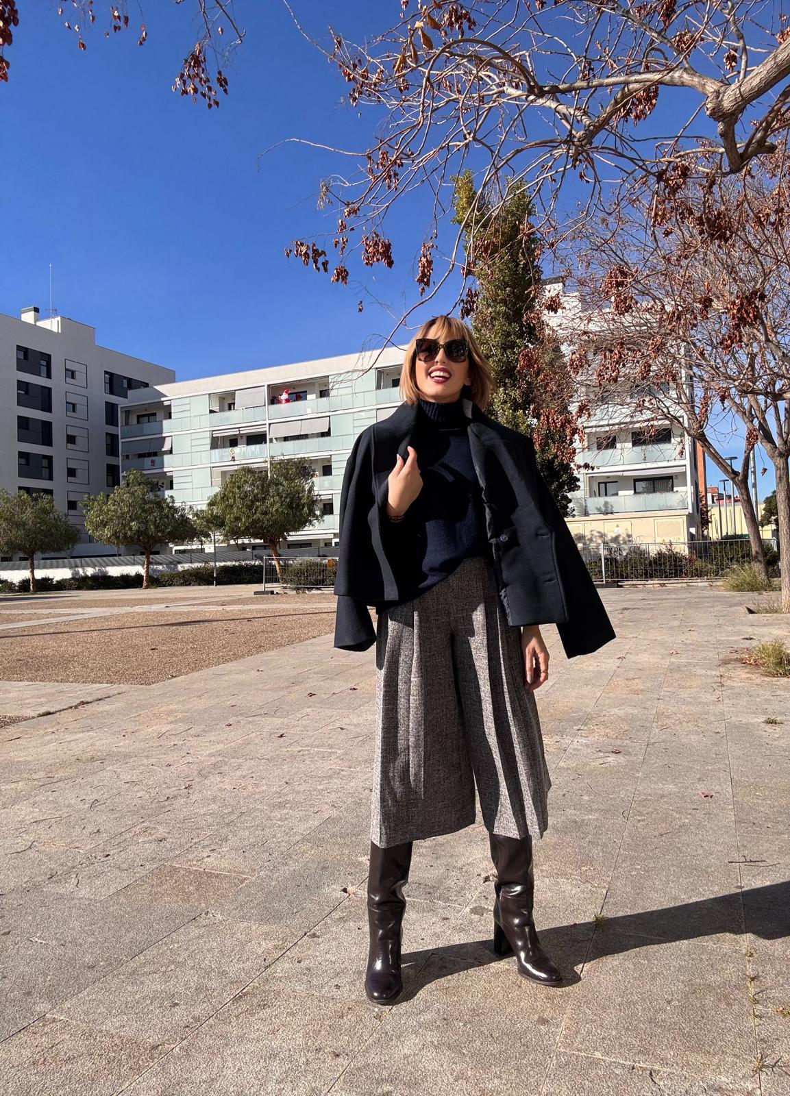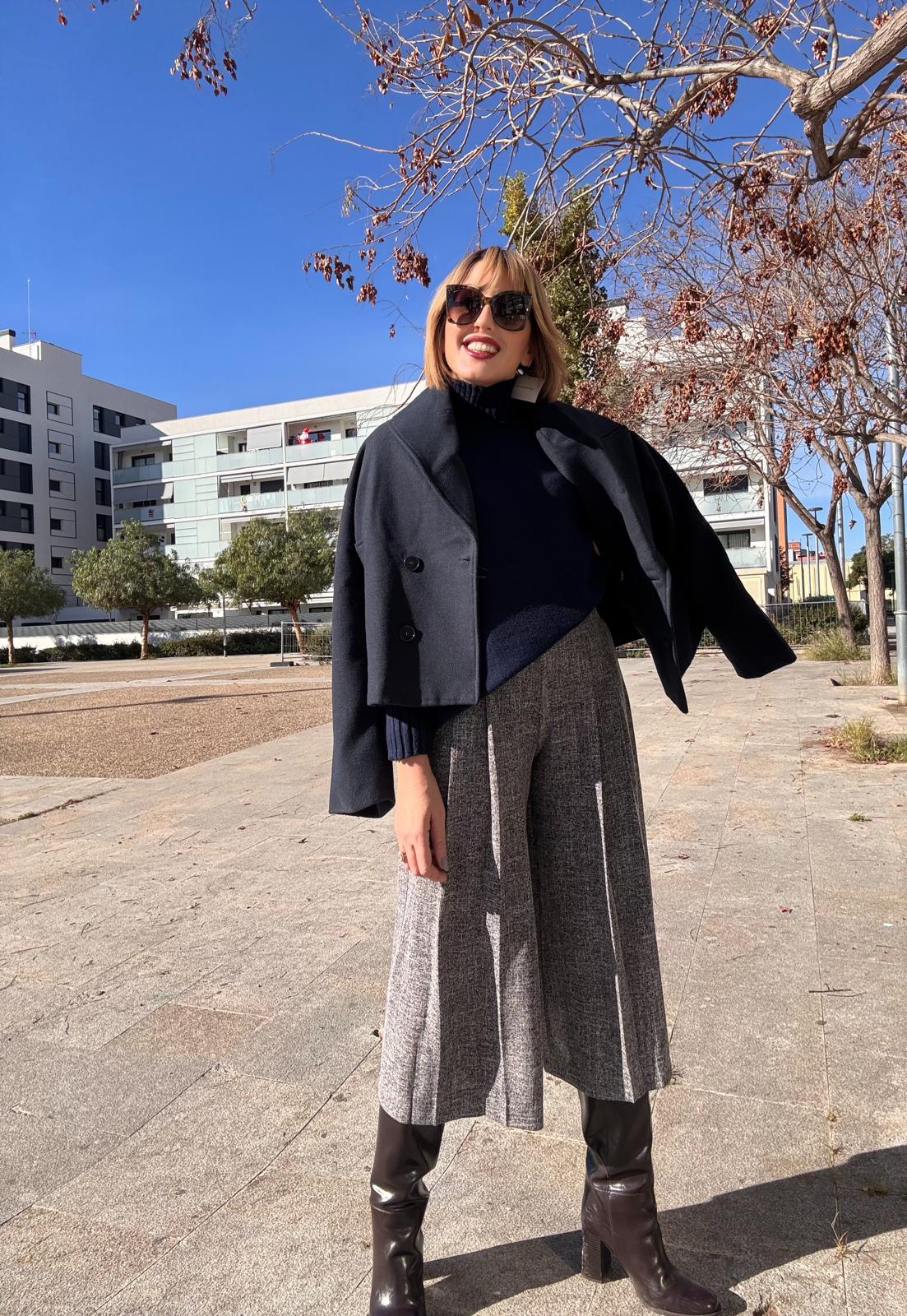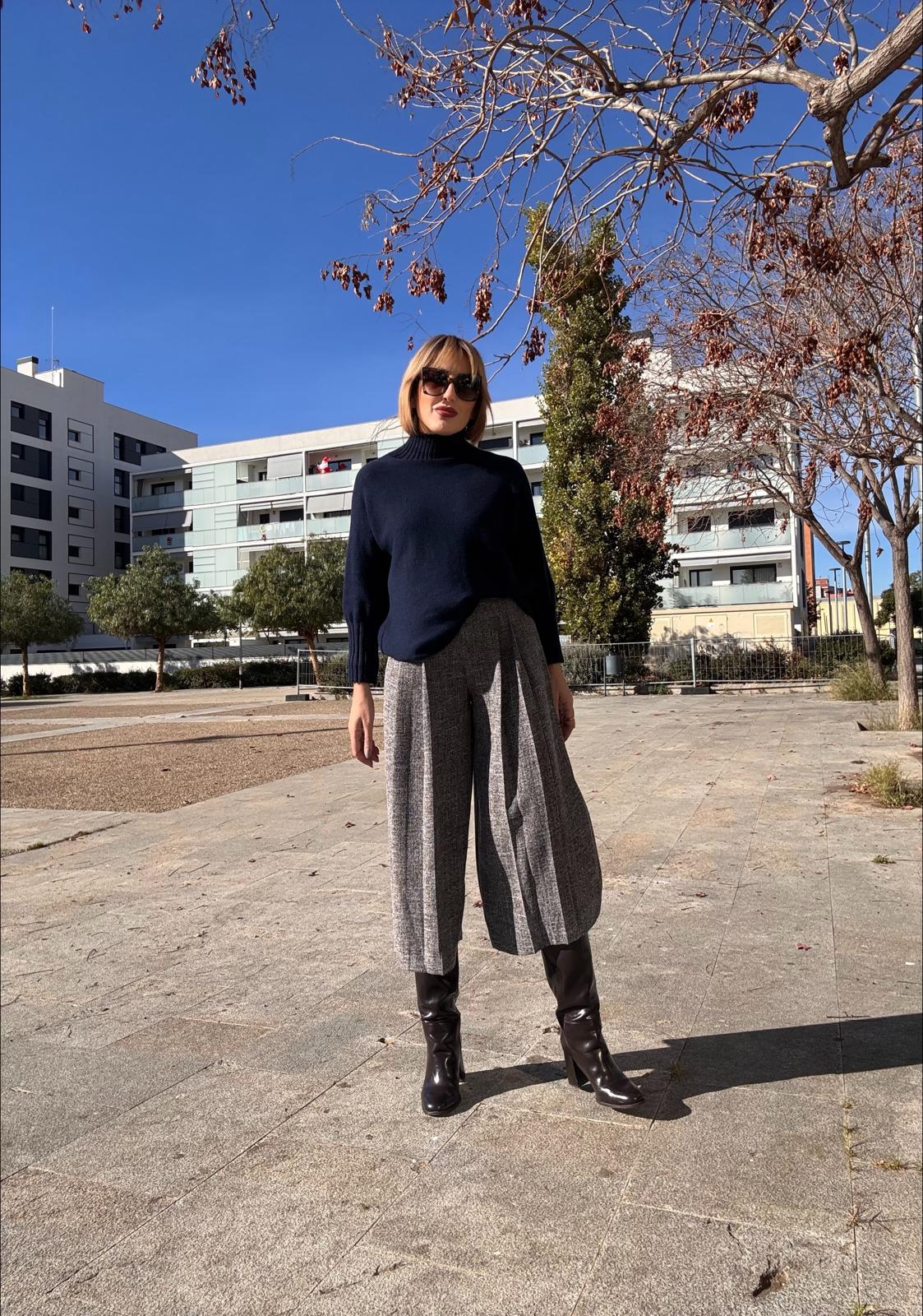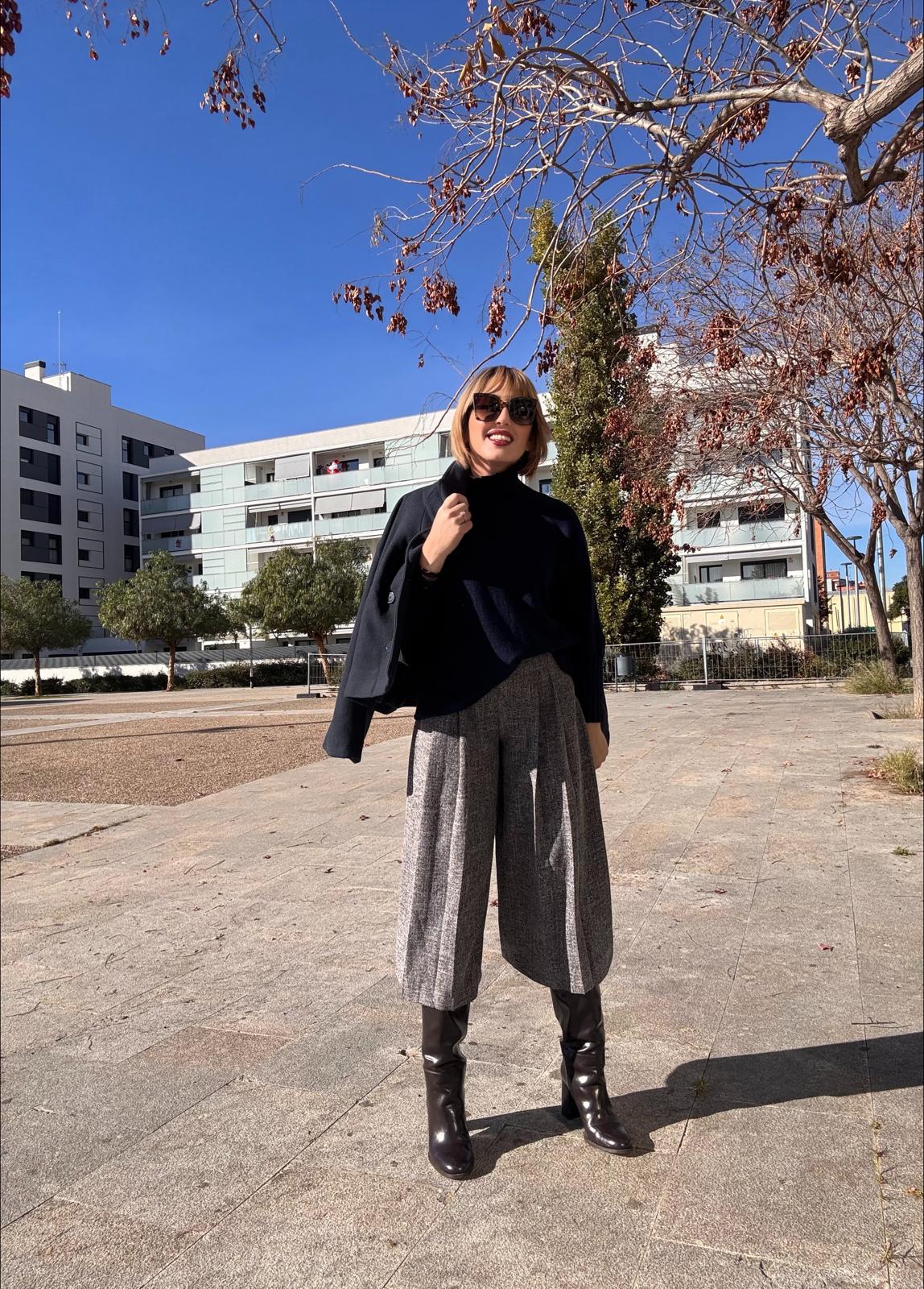 Pantalón estilo bermuda ancho .Tiro alto ,con pinza delantera .La modelo mide 1,60cm y habitualmente usa la talla S .