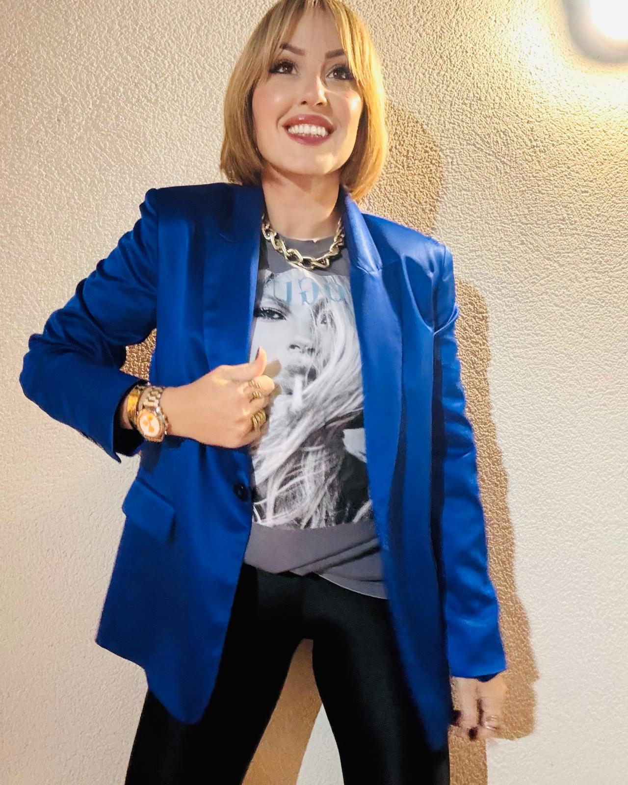 Blazer recta,satinada.Armada con hombrera y cuerpo .