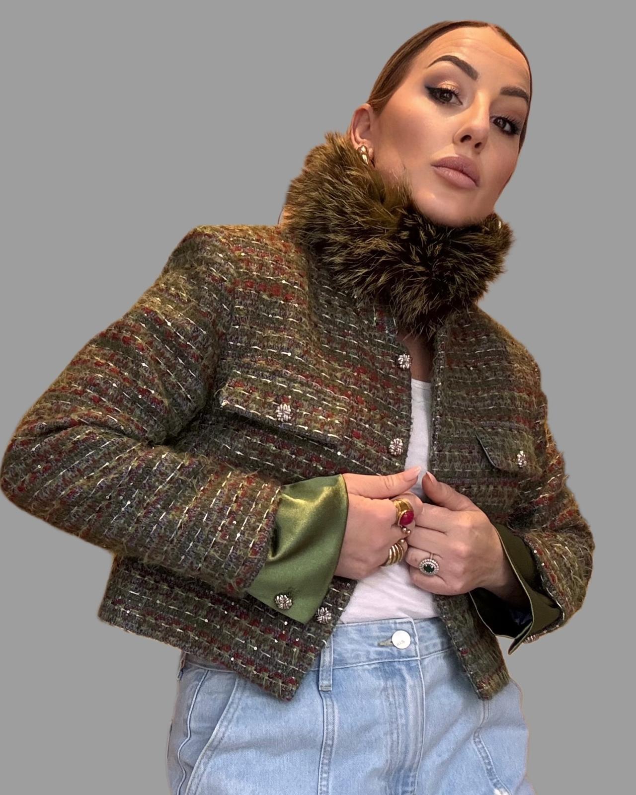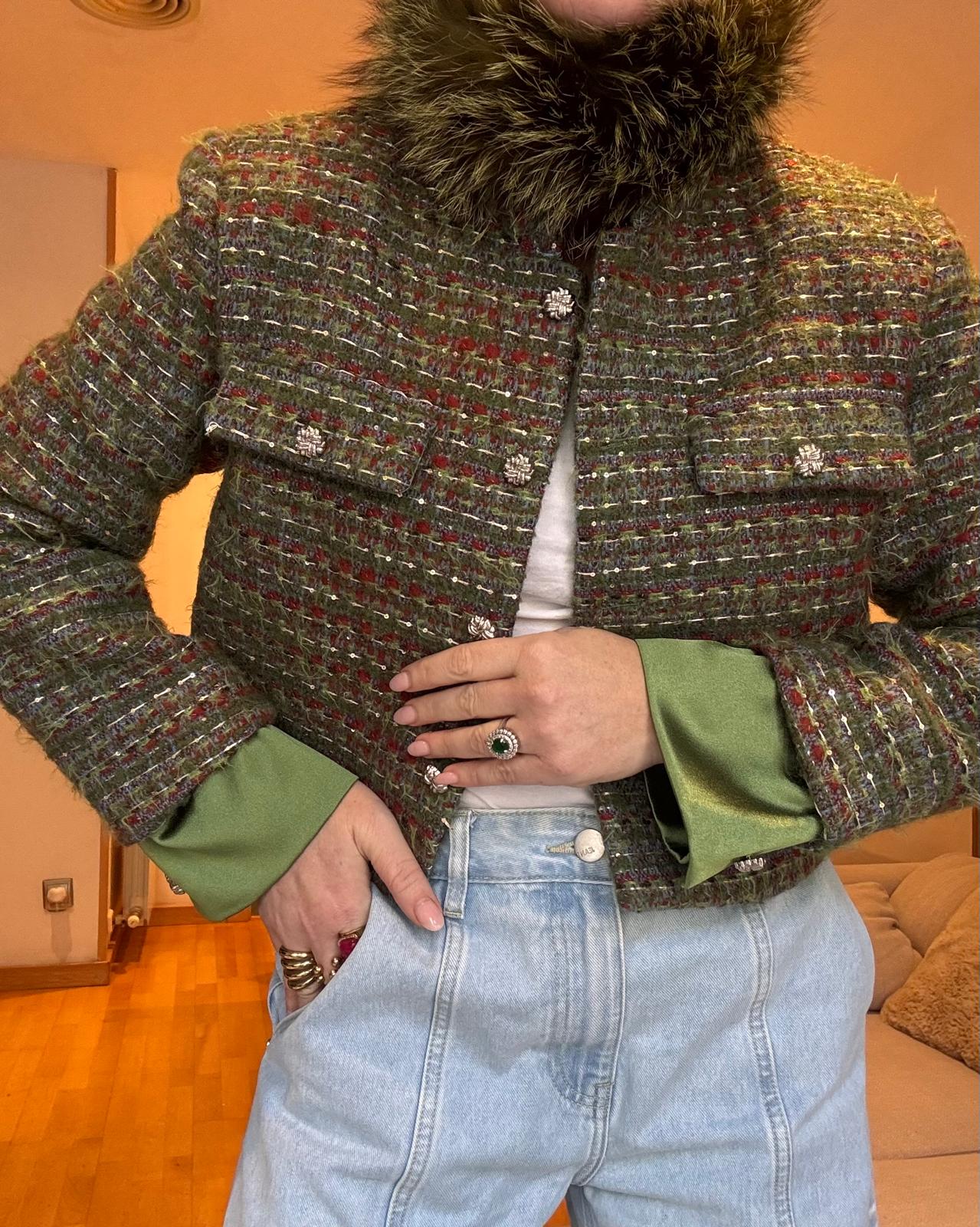 Cuello ELÁSTICO en pelo natural (FOX) tono verde lima .