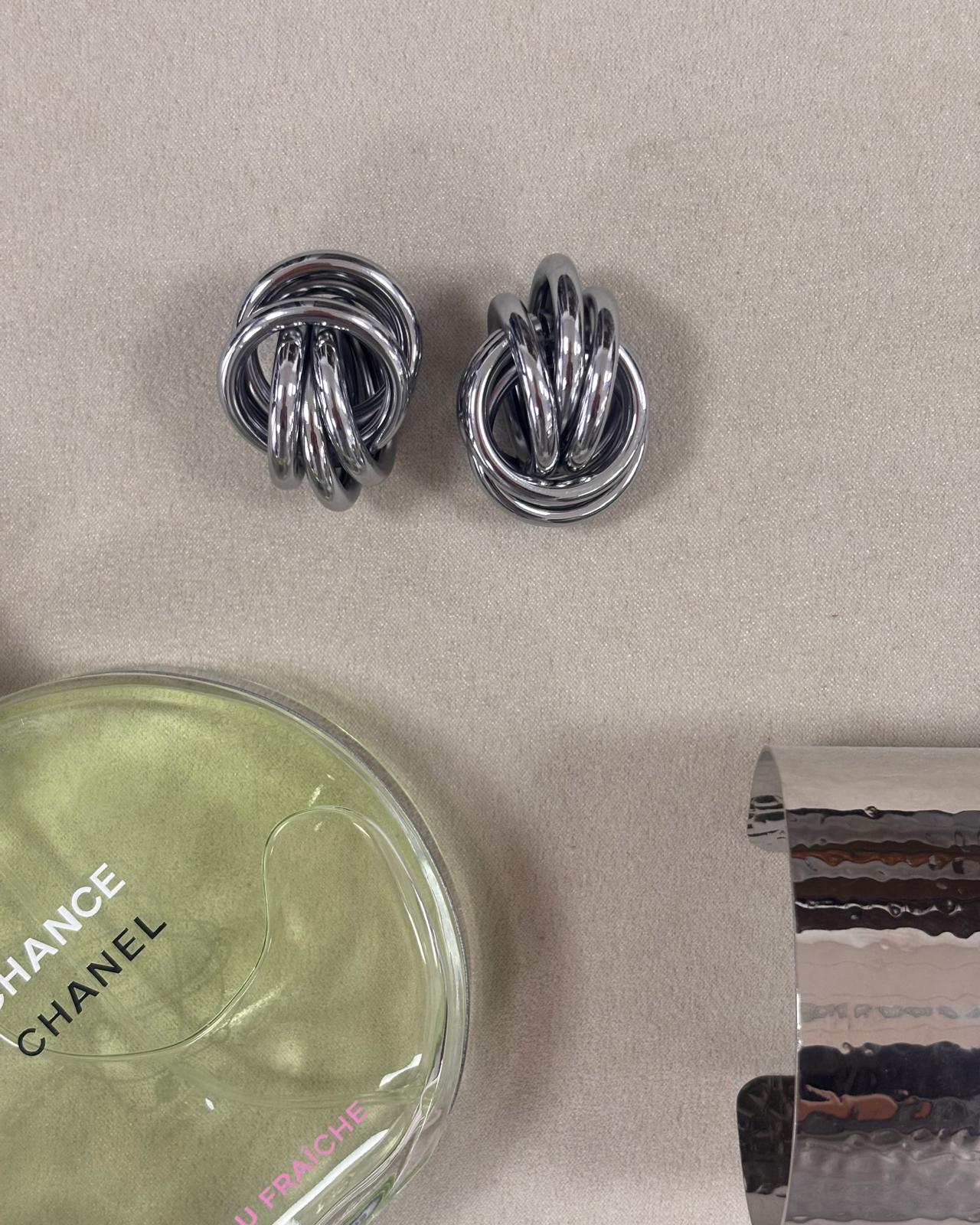 Pendientes de acero.Efecto ovillo de lana .