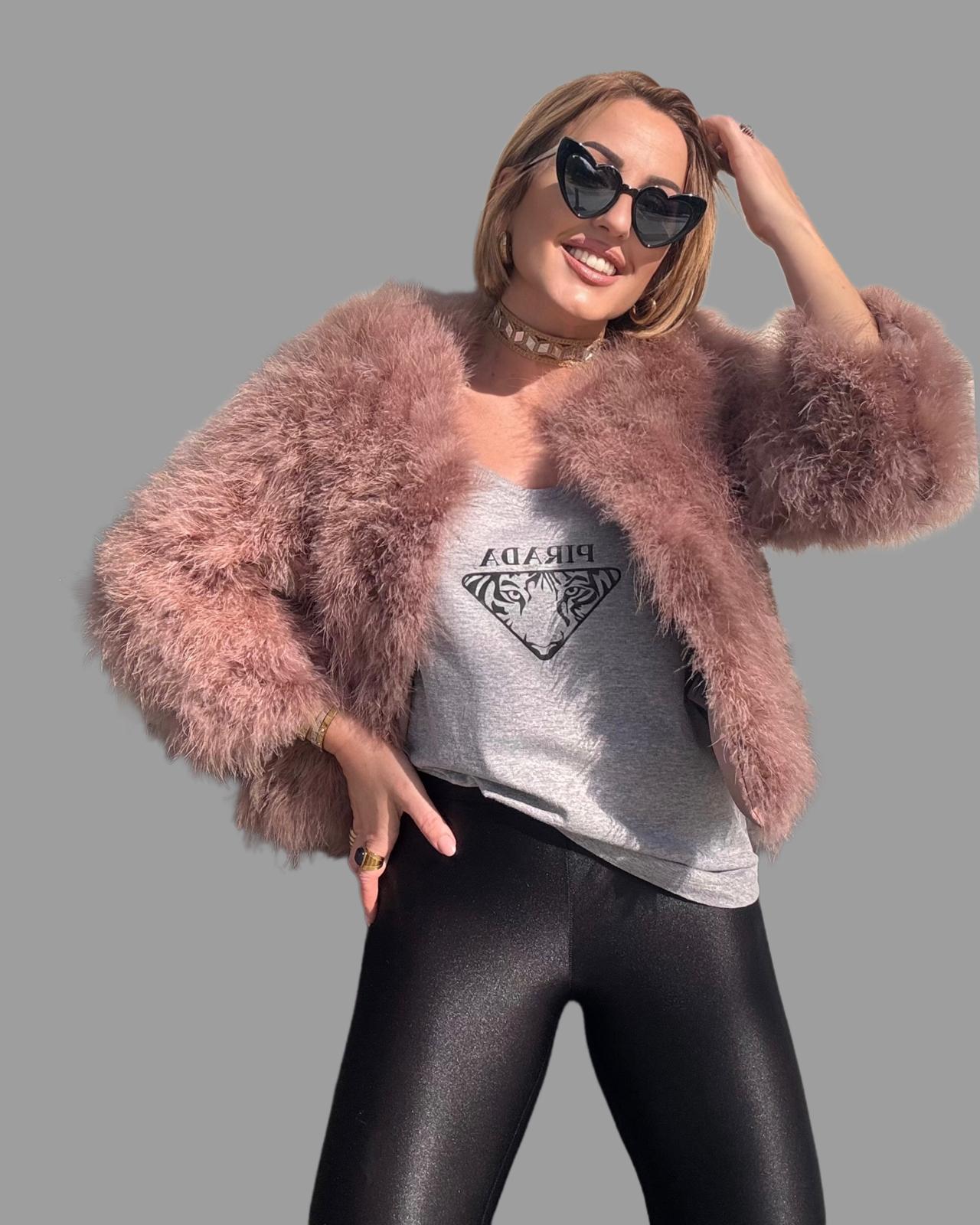 Chaqueta de plumas naturales.Sun cuello ,manga 3/4.Talla única ,manga 3/4 .La modelo mide 1,60cm y habitualmente usan la talla S