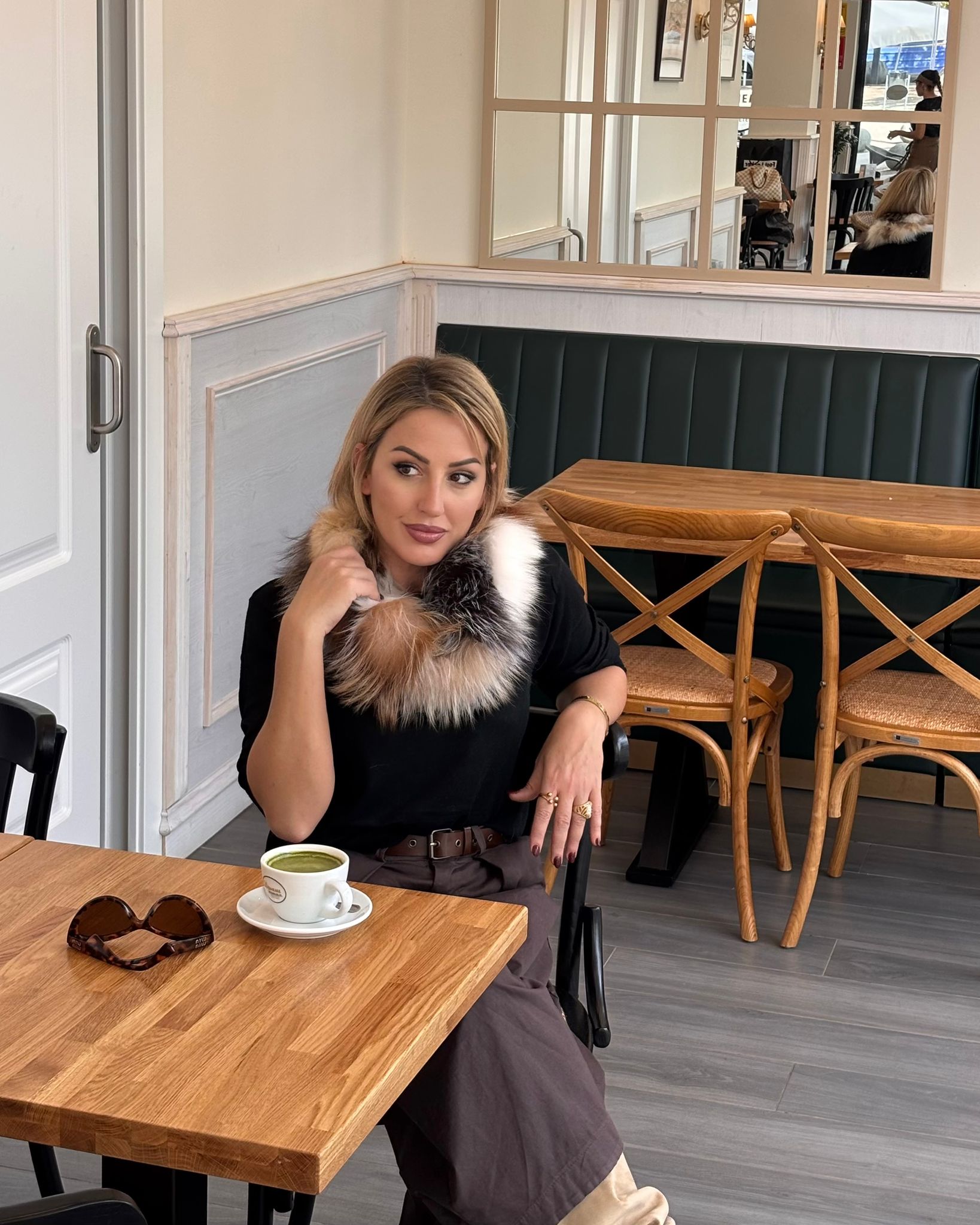 Maxi cuello doble vuelta de pelaje cosido .Fox natural.