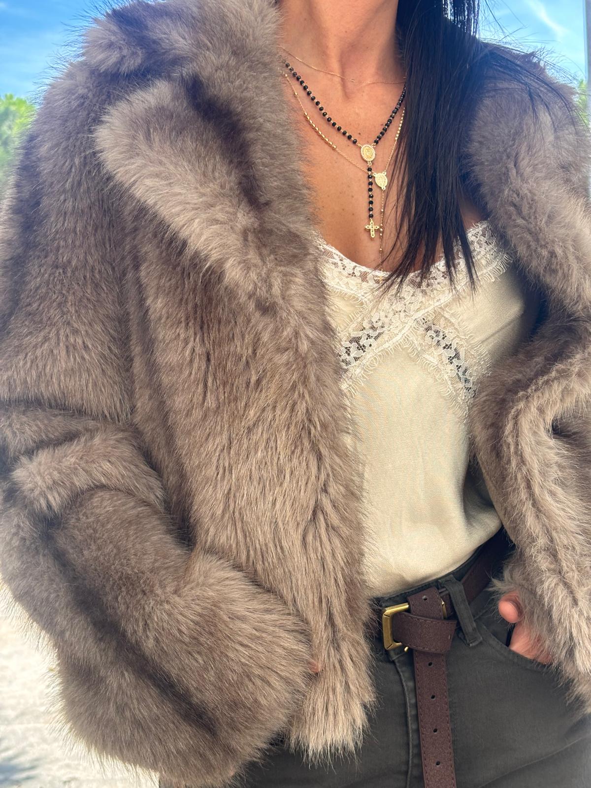 Collar de acero dorado.Forma rosario .Detalle de cruz al final.