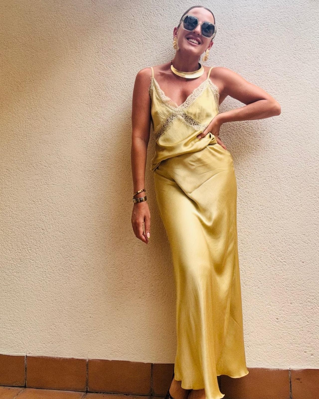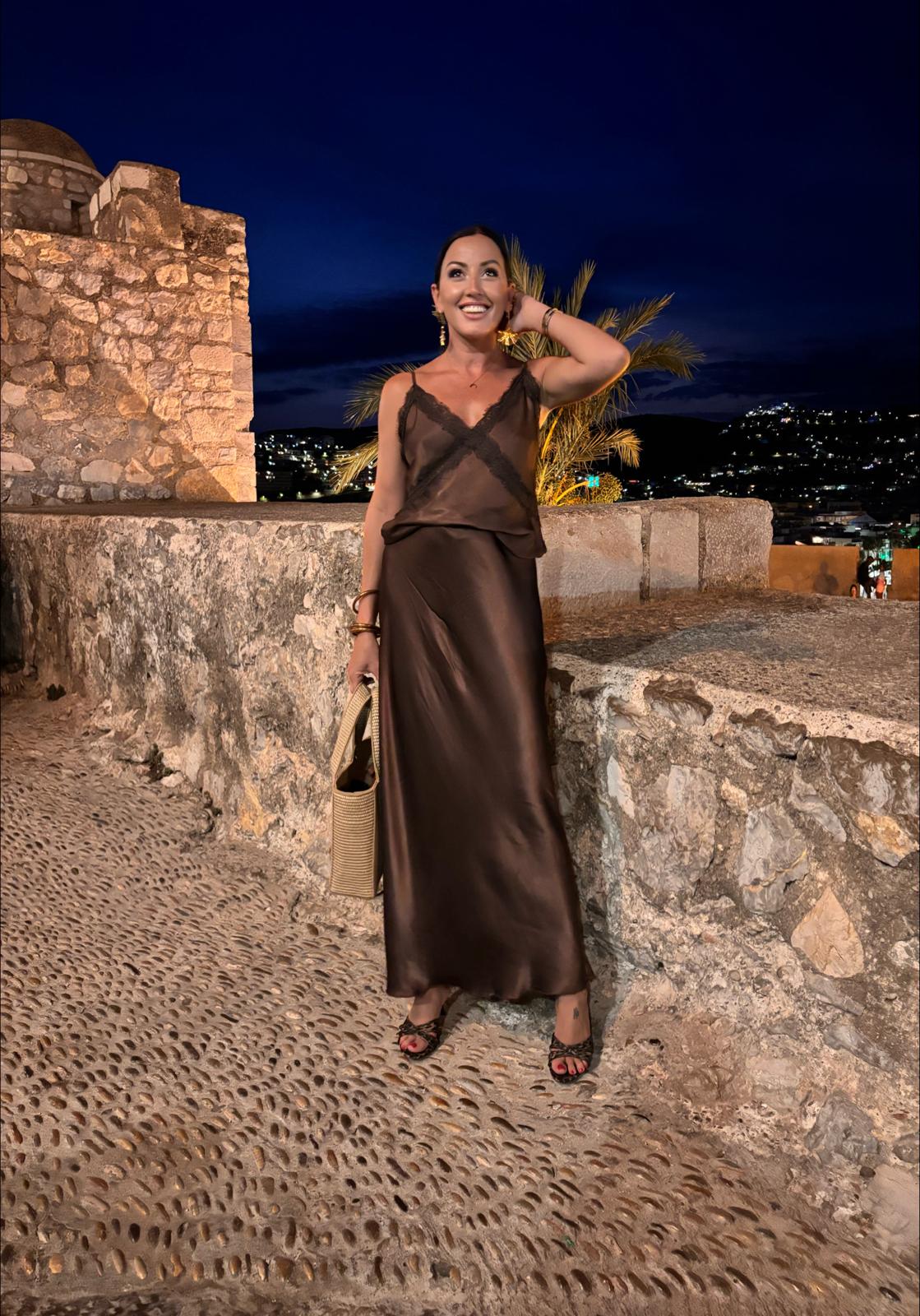 Falda satinada MIDI .Viscosa y elastano hace que sea una talla única que se adapte perfectamente desde la S a la L sin problema .Cortada al bies.