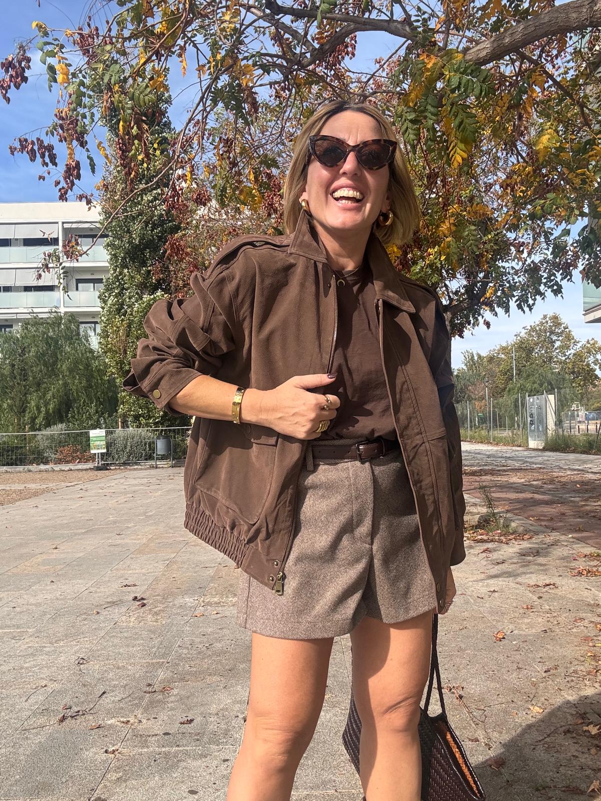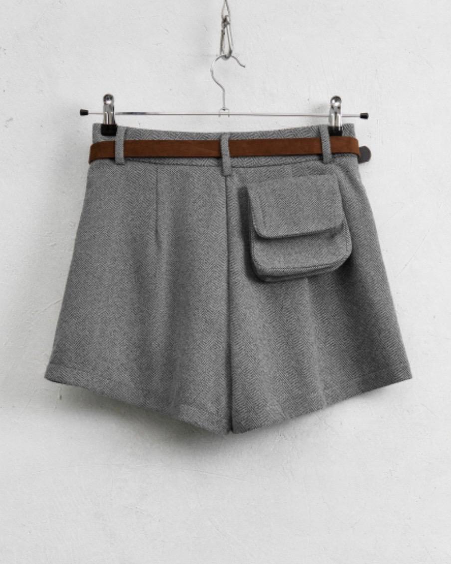 Short efecto tweed.Tiro medio con cinturón en eco piel.