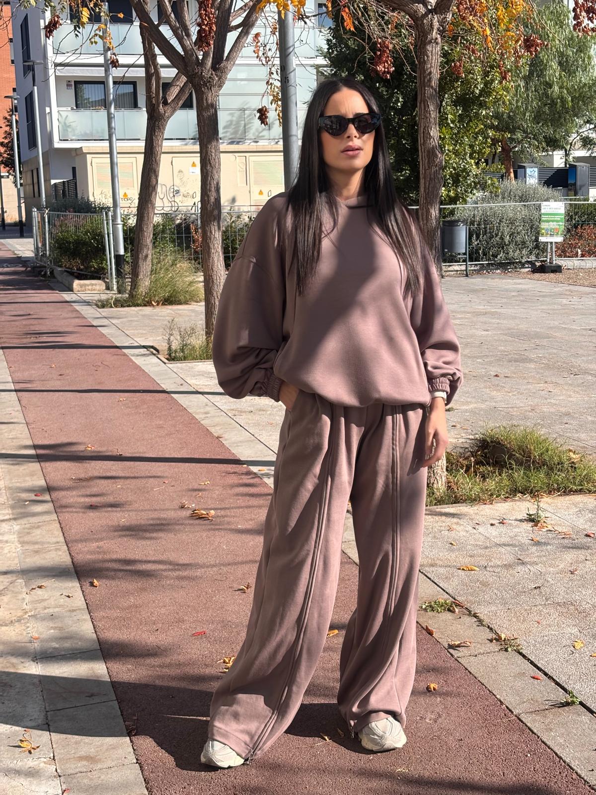 Sudadera de algodón enfelpado.Capucha .Oversize ,la modelo mide 1,70cm y habitualmente usa la talla S .